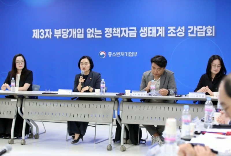 ‘제3자 부당개입 없는 정책자금 생태계 조성’을 위한 현장 간담회에 참석한 한성숙 중기부 장관은 “정보가 부족한 기업을 상대로 정부·공공기관을 사칭하거나 허위서류 작성 등을 한다면 정책자금의 본래 취지까지도 훼손될 수 있고, 이는 정책자금 제도에 대한 신뢰를 무너뜨릴 수 있다”면서 “제3자 부당개입으로 인한 피해가 발생하지 않도록 법·제도적 개선방안 마련을 검토해 나가겠다”고 말했다.